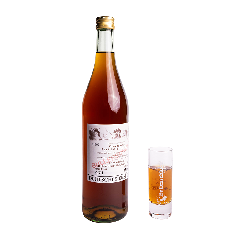Bullenschluck ist ein einzigartiger Bitterlikör, der nach der geheimen Rezeptur des Apothekers Hans Dunker hergestellt wird.