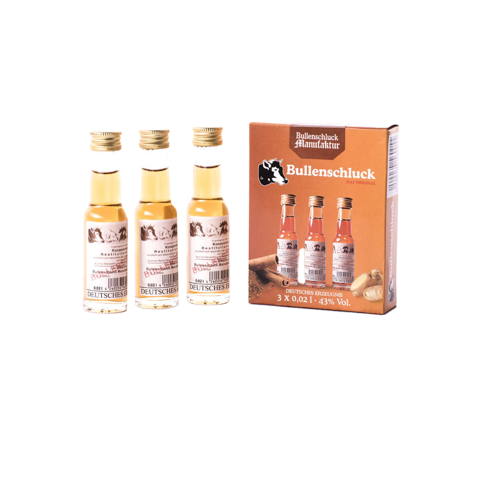 Ideal als Geschenk, für unterwegs oder als kleine Kostprobe. Dies ist die praktische Größe Bullenschluck als Mitbringsel.