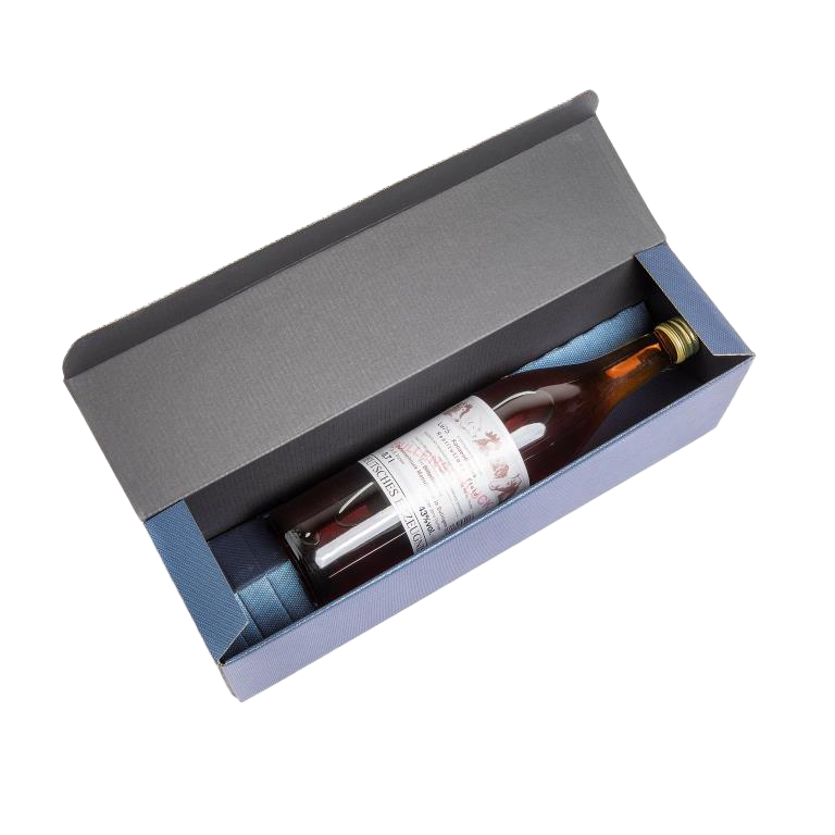 Der dunkelblaue Präsentkarton hat eine strukturierte Oberfläche, welche sehr edel wirkt.